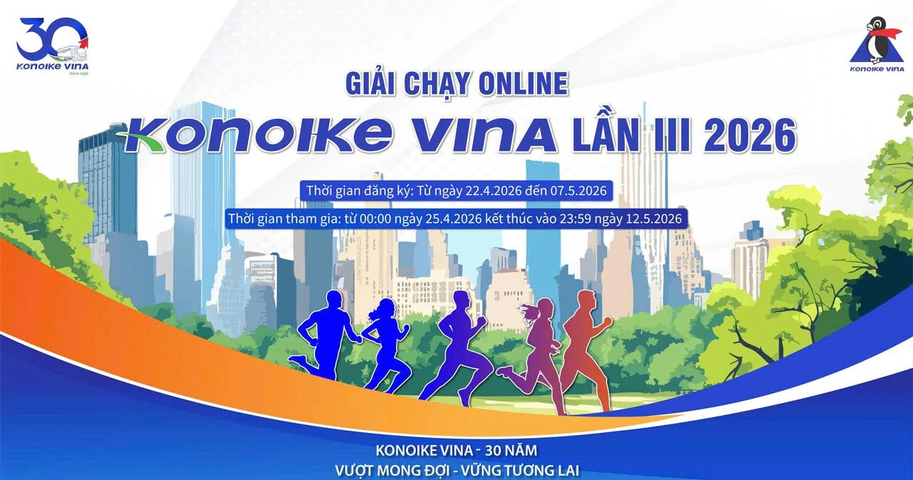 Nằm trong chuỗi sự kiện chào mừng cột mốc 30 năm thành lập KONOIKE VINA, Công đoàn Công ty, được sự ủng hộ của Ban Giám đốc tổ chức “Giải chạy online KONOIKE VINA lần III 2026”.