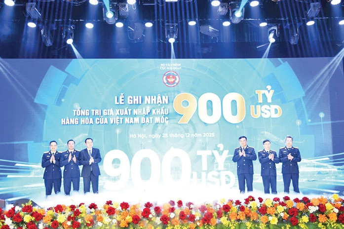 Lễ ghi nhận tổng trị giá xuất nhập khẩu hàng hóa của Việt Nam đạt mốc 900 tỷ USD, tổ chức tại Hà Nội ngày 25/12/2025. (Nguồn: Vĩnh Khang - Nhân Dân)