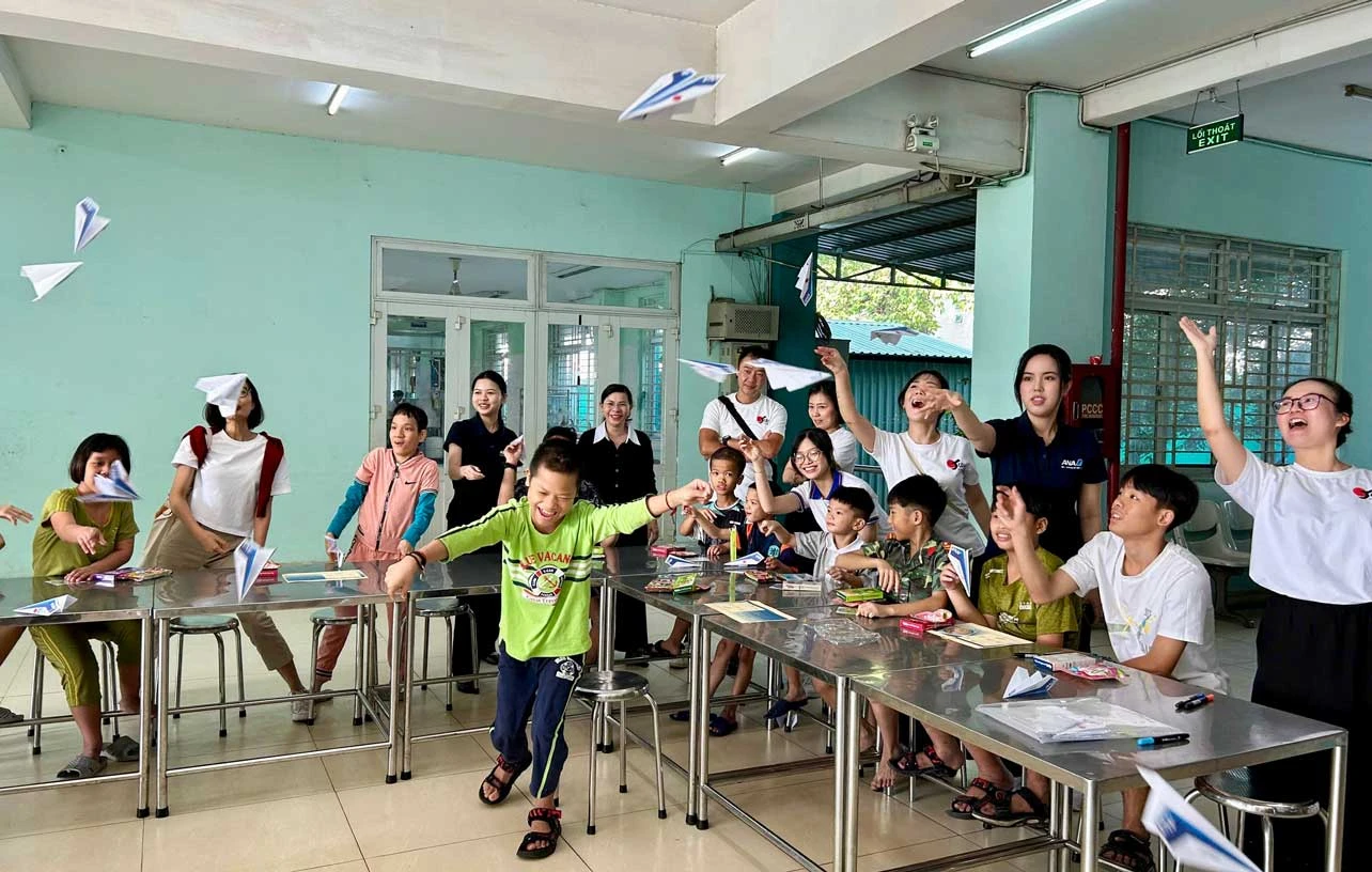 Trong khoảng thời gian ngắn ngủi vài tiếng hôm nay, chúng mình đã có cơ hội gặp gỡ, giao lưu, mang đến những niềm vui nhỏ cho các em qua hoạt động gấp máy bay giấy và ghép hình nhân vật Doraemon siêu đáng yêu.